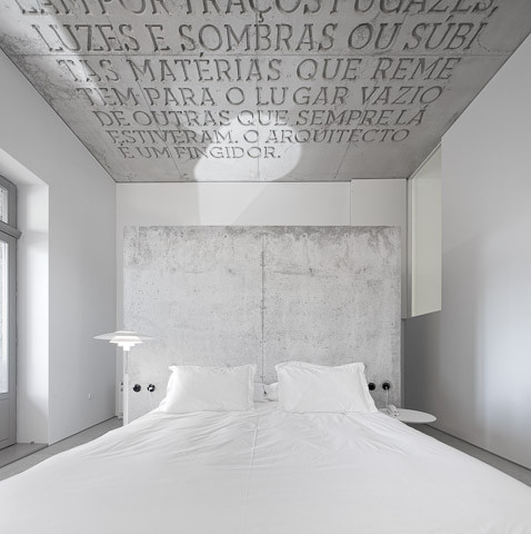 Hoje, o ornamento acrescenta-se na ausência de material, no baixo-relevo de cada letra inscrita na espessura da própria laje, ou seja, da estrutura. E fomos nós, autores, com as nossas próprias mãos, no estaleiro, a pregar e colar cada letra na cofragem do betão (a mão de obra não era especializada; alguns moldes ficaram, para sempre, fossilizados no betão e o texto, com uma ou outra gralha, denuncia-nos e regozijanos, também).